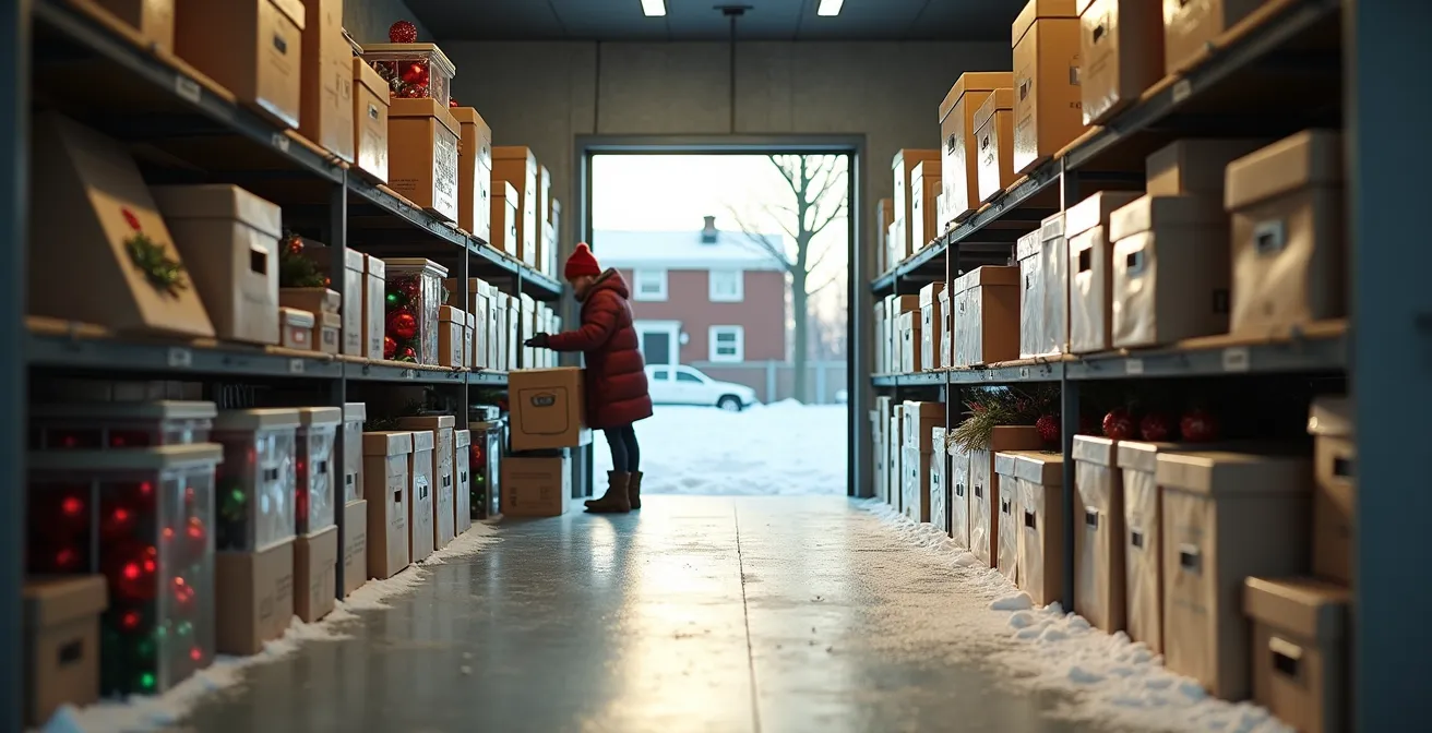 Cet article propose une approche méthodique, celle d’un organisateur professionnel. Nous n’allons pas simplement vous donner des astuces, mais une stratégie complète pour structurer votre espace de stockage. De la création d’un plan de circulation vital à la sélection des bons matériaux de protection contre le climat québécois, vous apprendrez à transformer votre unité en un système d’archivage efficace. L’objectif : que la récupération de vos décorations de Noël redevienne un plaisir, et non une corvée.